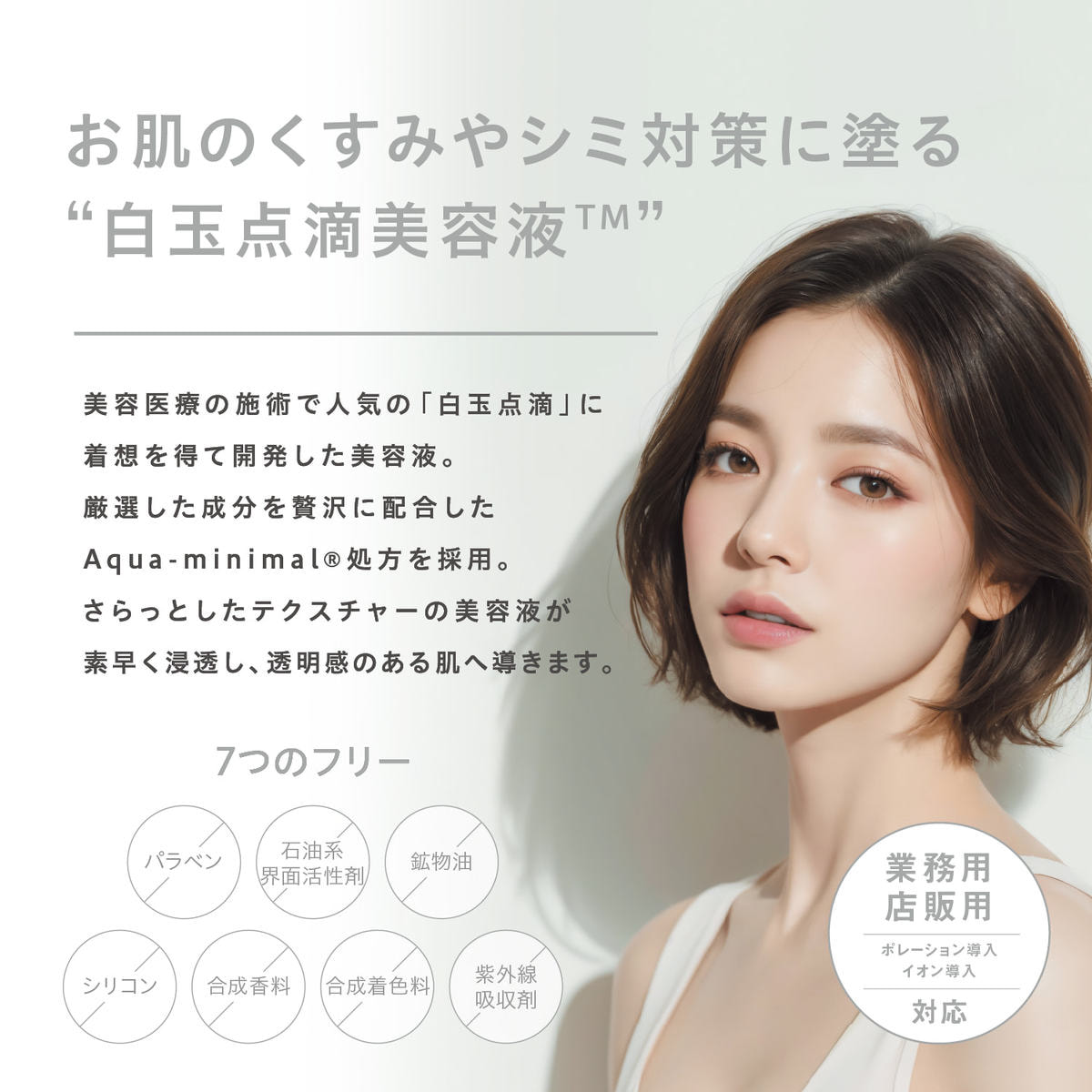 美容医療の施術で人気の「白玉点滴」に着想を得て開発した美容液。