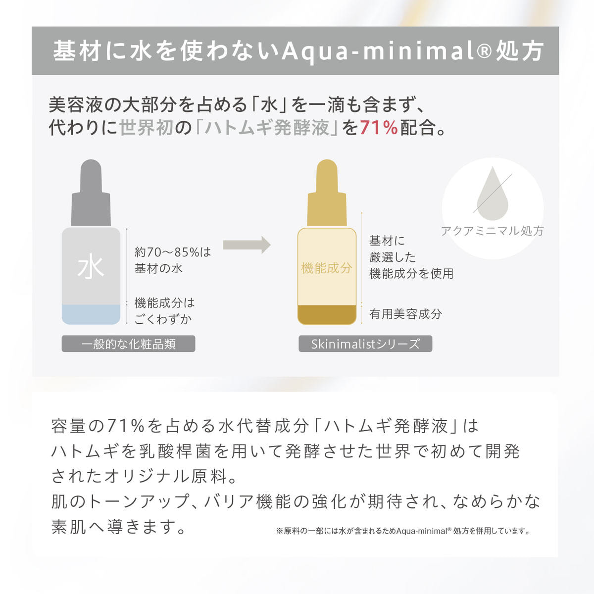 厳選した成分を贅沢に配合した Aqua-minimal®処方を採用。